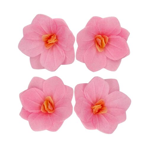18 pink edible wafer flowers, elegant and ready to decorate your desserts with style and sophistication.